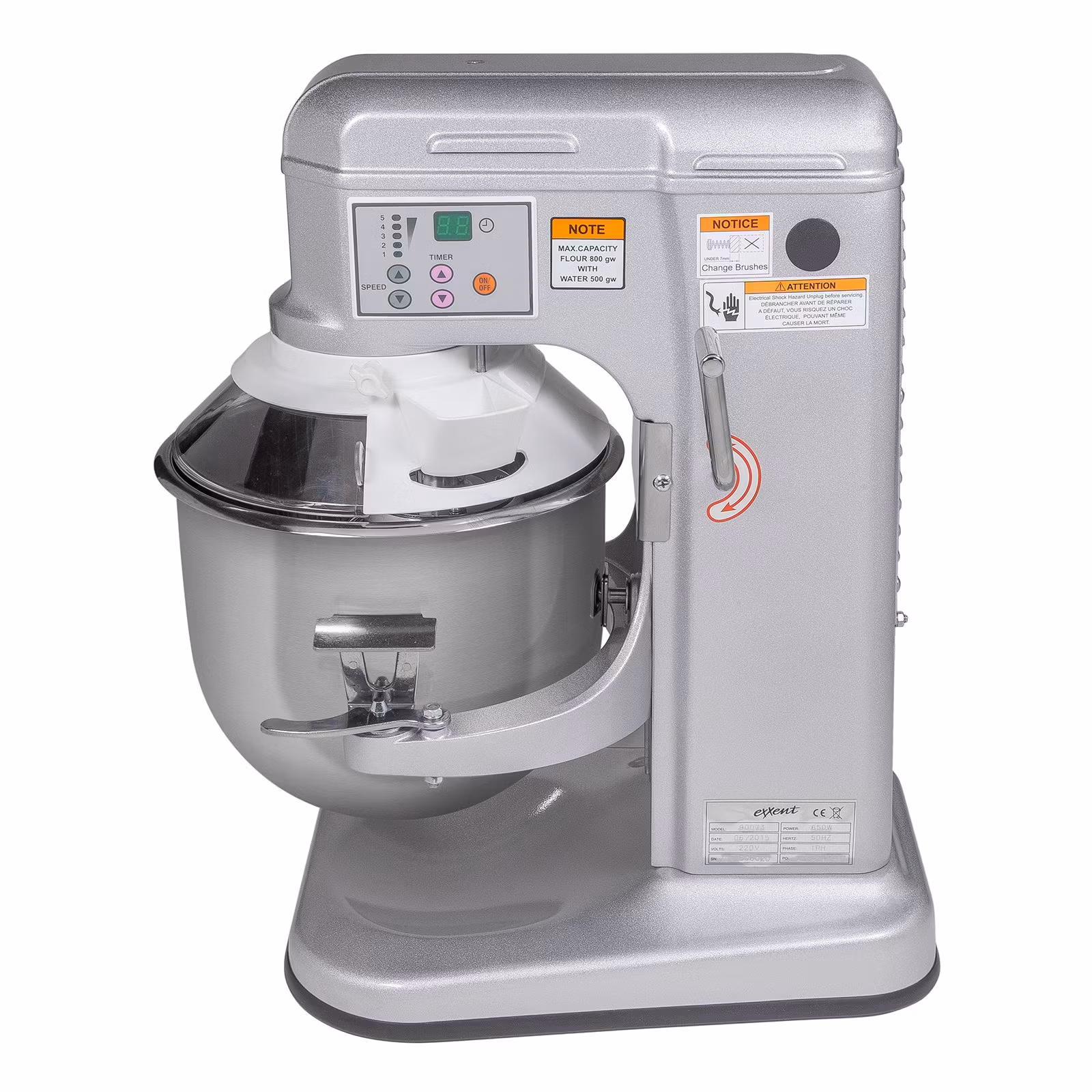 - Tillbehör: Visp, degkrok, flatblandare och safety guard