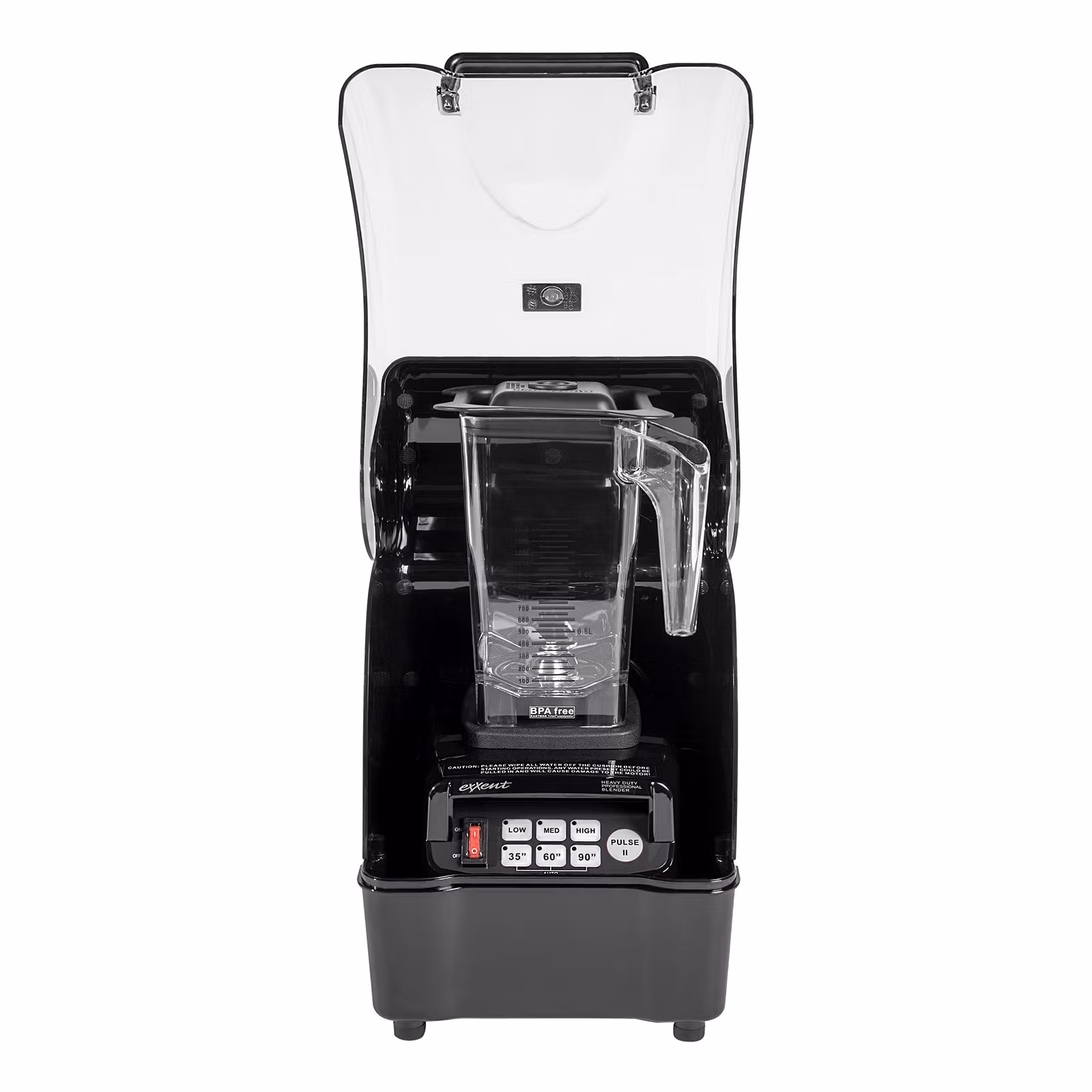 Denna kraftfulla blender är utrustad med ett huv för ljudreduktion, vilket gör den idealisk för att förbättra både gästers och personals trevnad i miljöer där ljudnivåer kan vara störande. Kannan rymmer 1,5 liter och är tillverkad av BPA-fri Tritan, vilket gör den hållbar och temperaturtålig upp till ca 100°C. Förprogrammerade cykler gör det snabbt och enkelt att använda, och den har förseglade knappar för att förhindra att vätska tränger in i motorn.