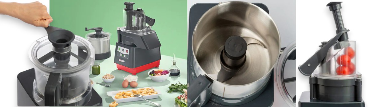 Prep4You Kombinerad Grönsaksskärare & Snabbhack förenar två funktioner i en professionell maskin: en grönsaksskärare för skivning, rivning, strimling, tärning och pommes frites samt en snabbhack/emulgeringsfunktion för att hacka, mixa, mala, knåda och emulgera. En platsbesparande lösning för storkök, restauranger och catering.