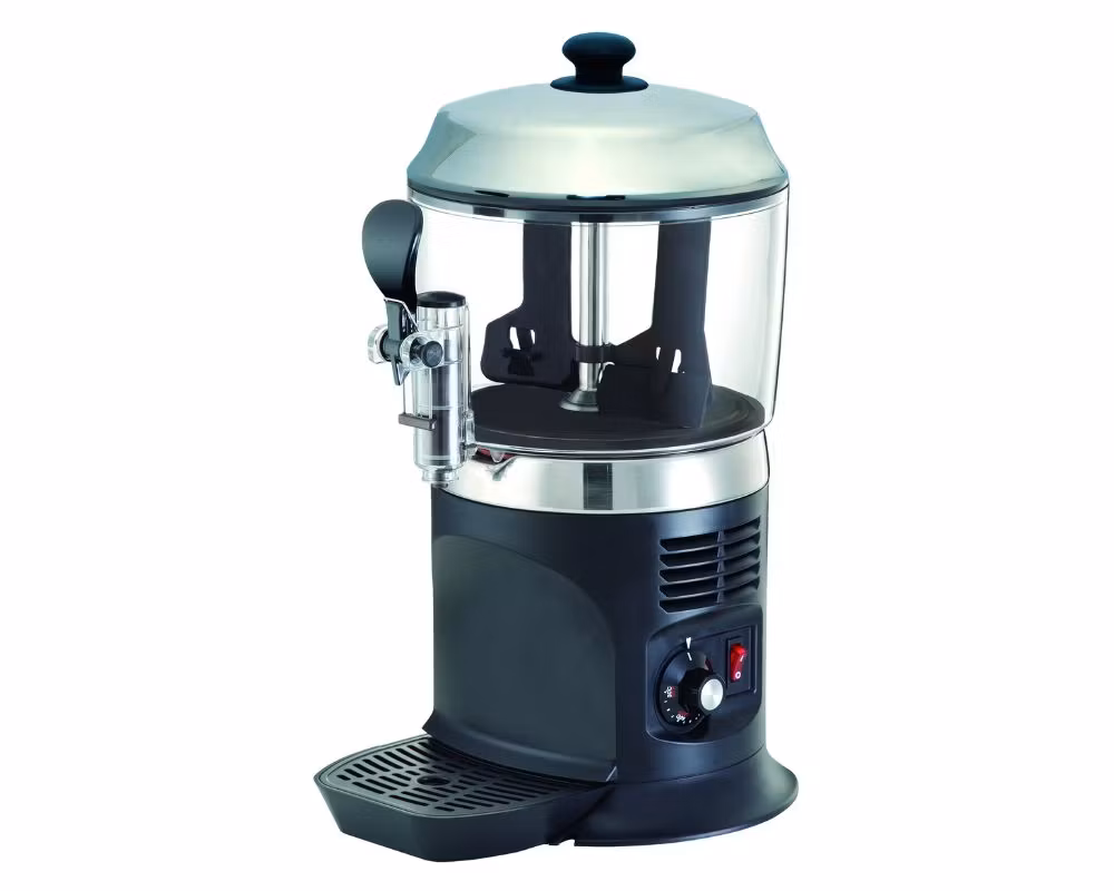 Dispensern har en kapacitet på 5 liter och är utrustad med en integrerad omrörningsmekanism som håller drycken jämn och förhindrar att kakao eller choklad sjunker till botten. Den steglösa temperaturkontrollen gör det enkelt att justera värmen mellan 30 °C och 90 °C, vilket ger optimal temperatur för varm choklad, kakao eller varm mjölk.