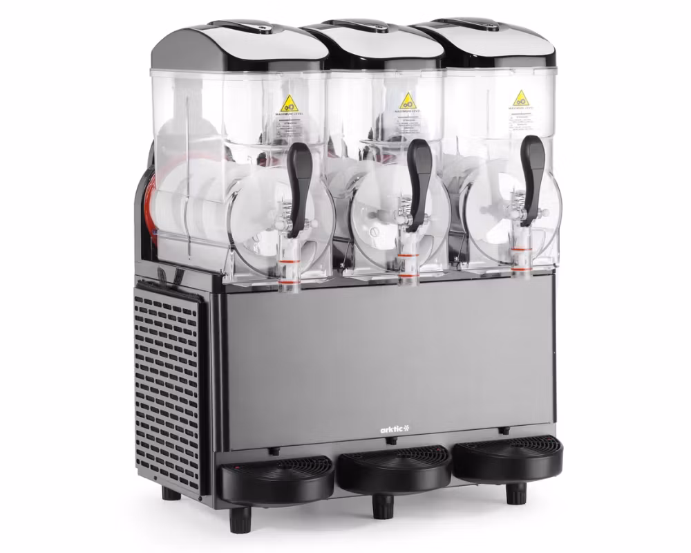 Arktic Slushmaskin 3×12 L är en högkapacitetsmaskin utvecklad för professionell servering av slush och kylda drycker i miljöer med hög efterfrågan. Med tre separata 12-litersbehållare, var och en med individuell temperaturstyrning, kan du servera flera smaker samtidigt och anpassa produktionen efter behov. Den digitala temperaturregulatorn gör det enkelt att växla mellan slushläge och kylda drycker, vilket ger maximal flexibilitet i caféer, restauranger, nöjescenter och event.