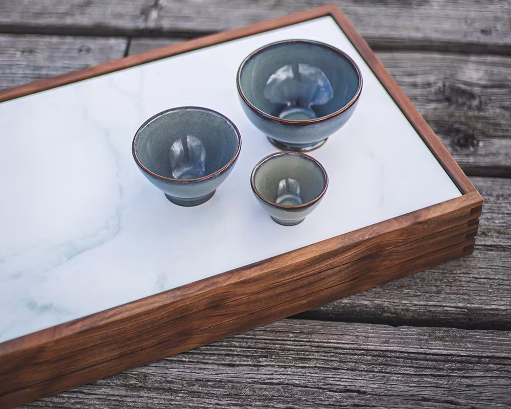 Det generösa 1/1-formatet gör plattan idealisk för större uppläggningar av exempelvis ostar, charkuterier, fisk och desserter.