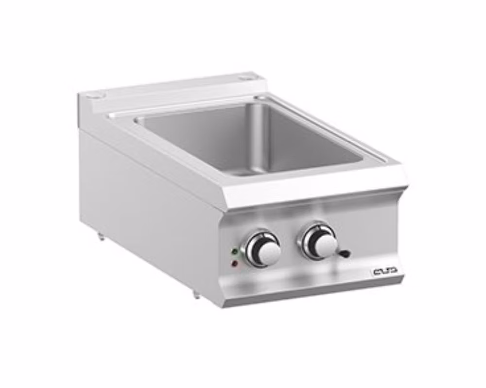 Vattenbadet är anpassat för GN 1/1-kantiner och ger jämn och stabil uppvärmning, vilket gör det perfekt för varmhållning av såser, soppor, grytor, grönsaker och färdiga rätter. Den skonsamma värmen från vattenbadet hjälper till att bevara smak, konsistens och kvalitet på maten under servering.