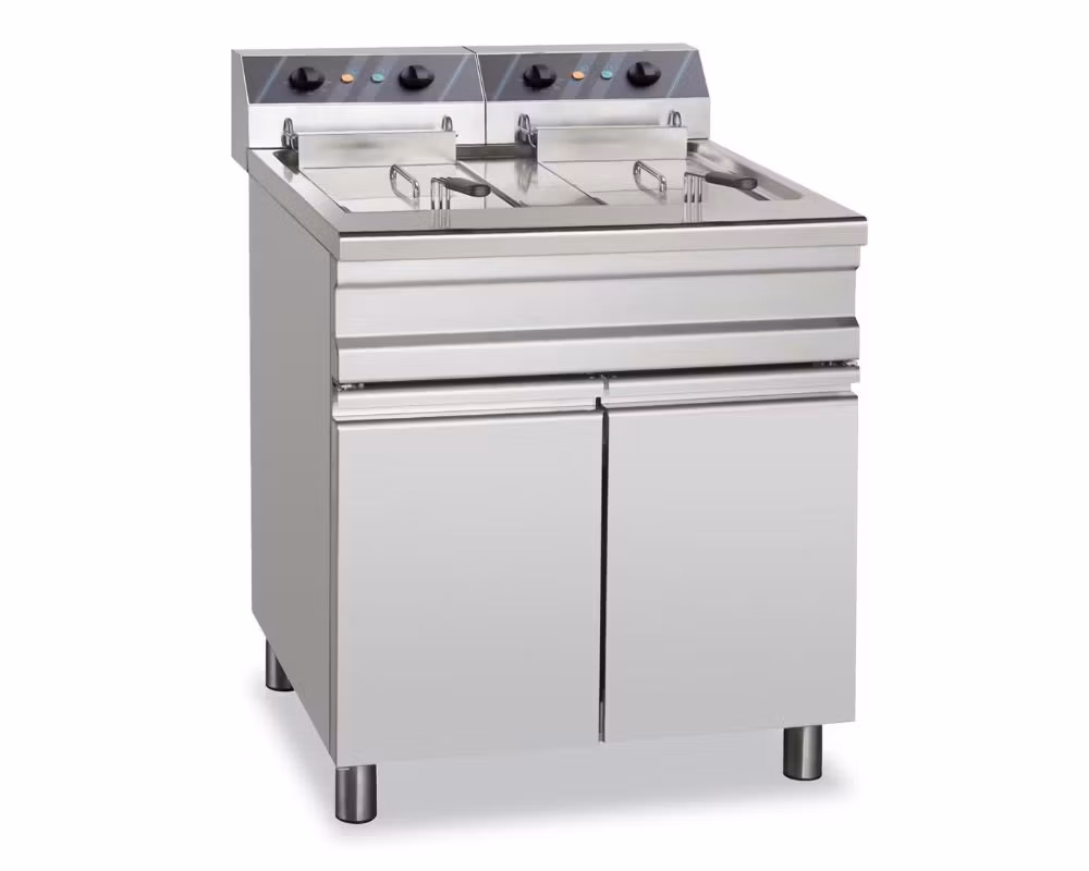 • Utförande: Elektrisk fritös med dubbla bassänger och underskåp