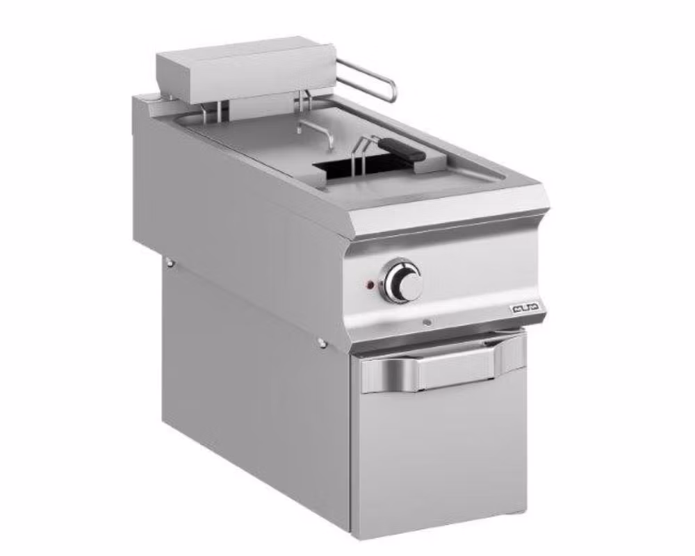 En kompakt och kraftfull fritös för restaurang och storkök som kombinerar effektiv fritering, hygienisk design och platsbesparande installation för professionella köksmiljöer.