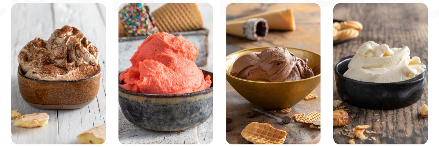 Användningsområden: Glass, sorbet och frysta desserter