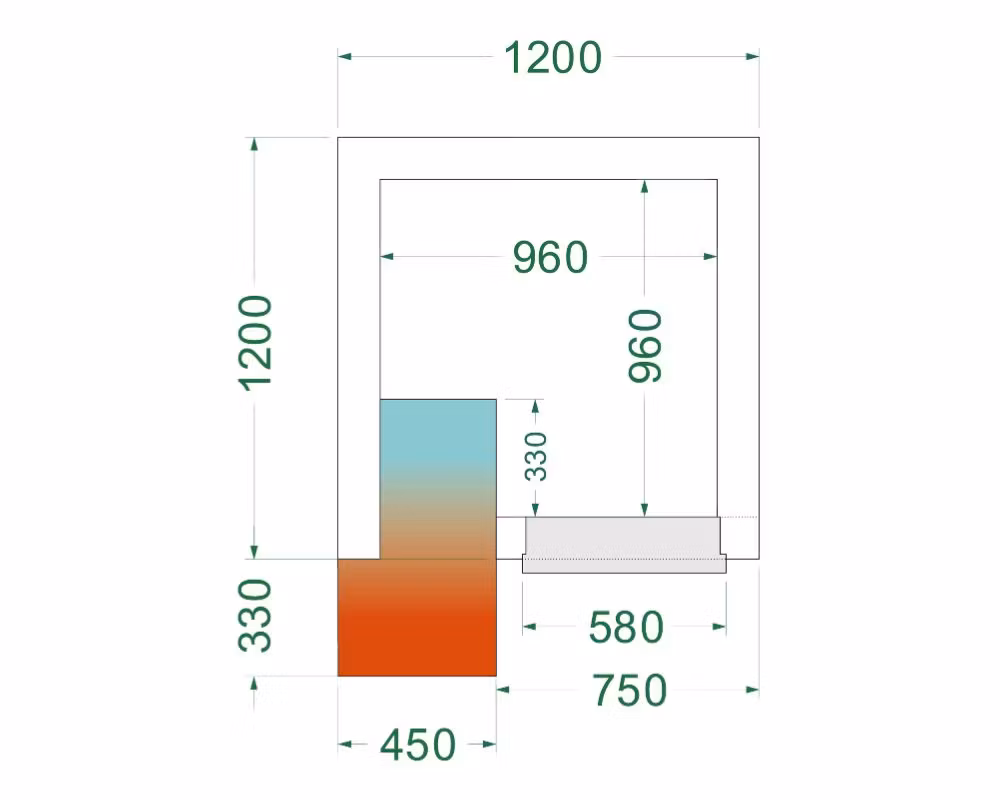 • Externa mått (BxDxH): 1200 × 1200 × 2200 mm
