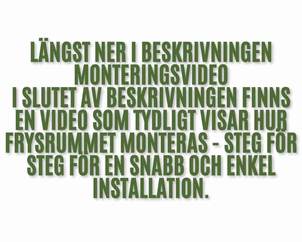 Frysrummet levereras redo efter ihopsättning, vilket möjliggör snabb och enkel montering. Med 120 mm panelisolering, ventilerad kylning och automatisk avfrostning med het gas säkerställs jämn temperatur mellan -20 och -10 °C, även vid hög omgivningstemperatur (klimatklass 5). Den halksäkra botten i rostfritt stål SS304 klarar tung belastning upp till 2000 kg/m², och remsgardin medföljer för minimerade kylförluster.