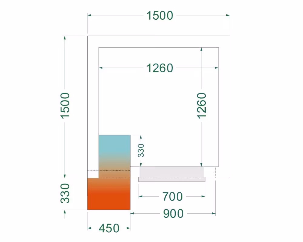 • Externa mått (BxDxH): 1500 × 1500 × 2200 mm