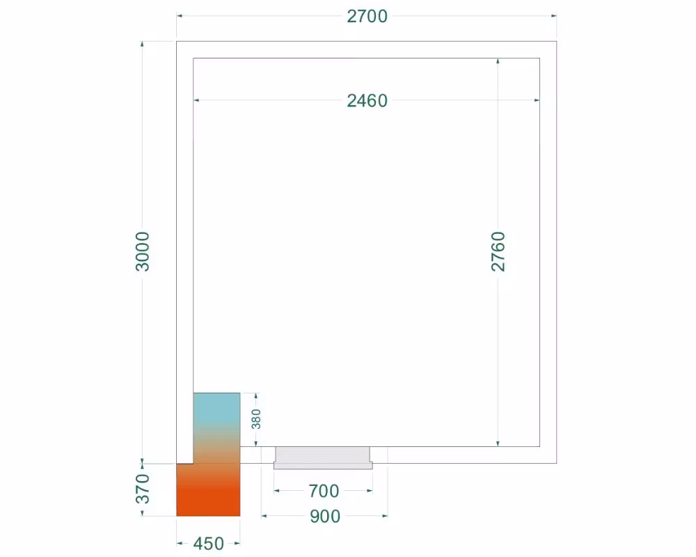 • Externa mått (BxDxH): 2700 × 3000 × 2200 mm