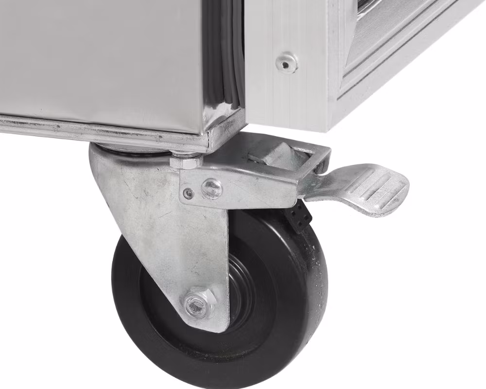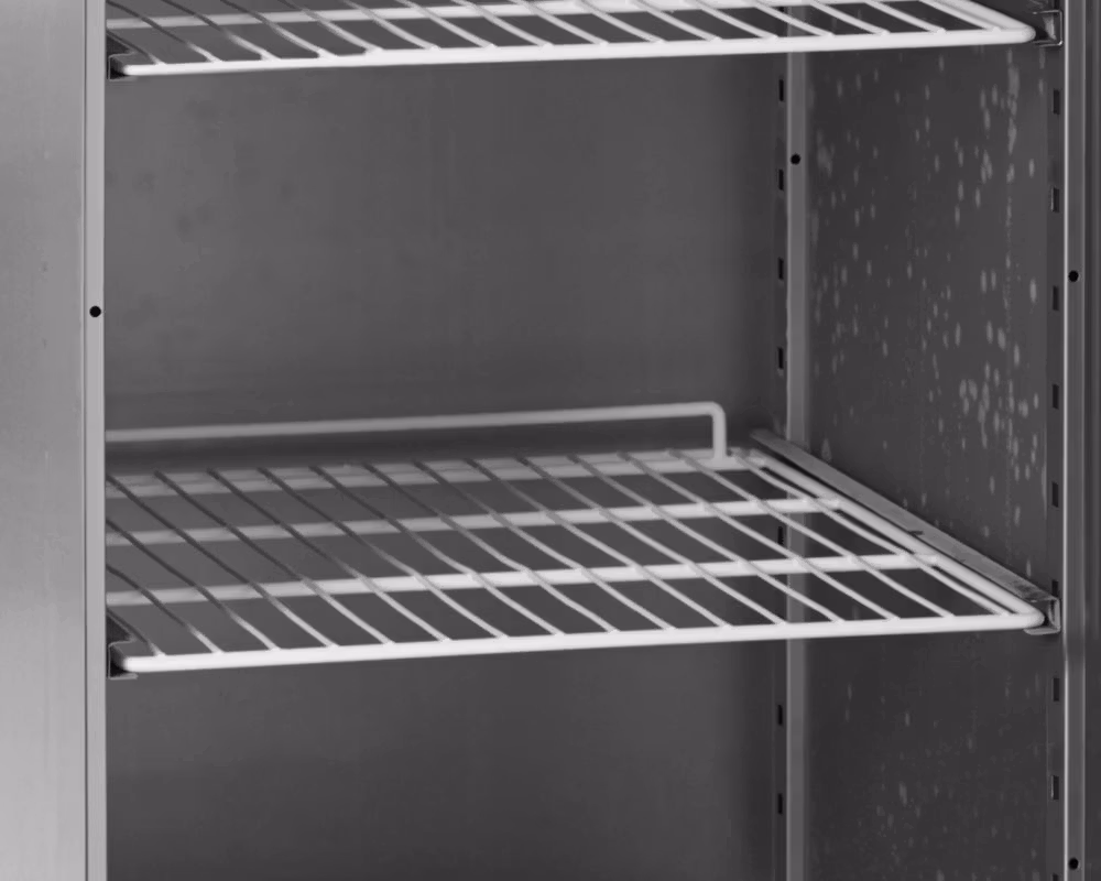 Skåpet är tillverkat i rostfritt stål (SS201) invändigt och utvändigt och är utrustat med självstängande dörr samt lås för säker förvaring. De ställbara GN1/1-hyllorna ger flexibel inredning och effektiv organisering. Tack vare kraftiga hjul (2 med broms) är frysen enkel att flytta och positionera. Som tillbehör finns fotpedal för dörröppning, vilket underlättar i intensiva köksmiljöer.