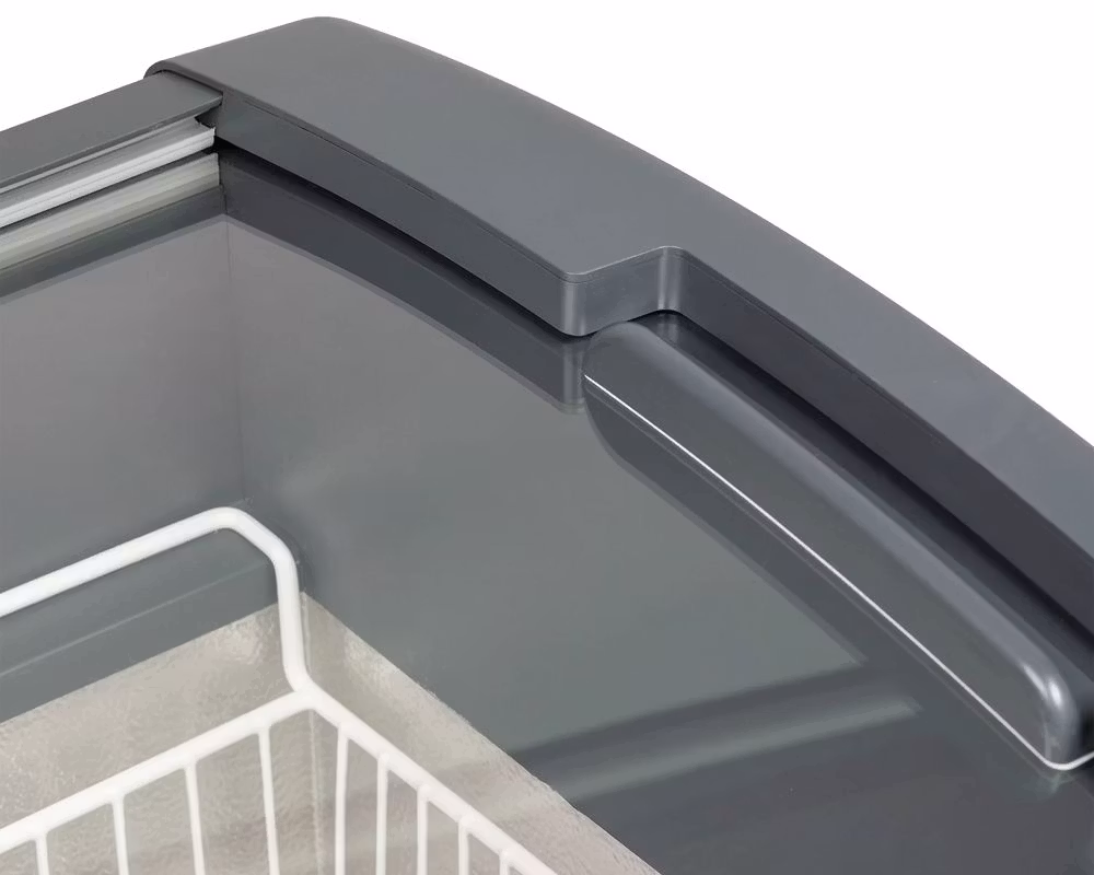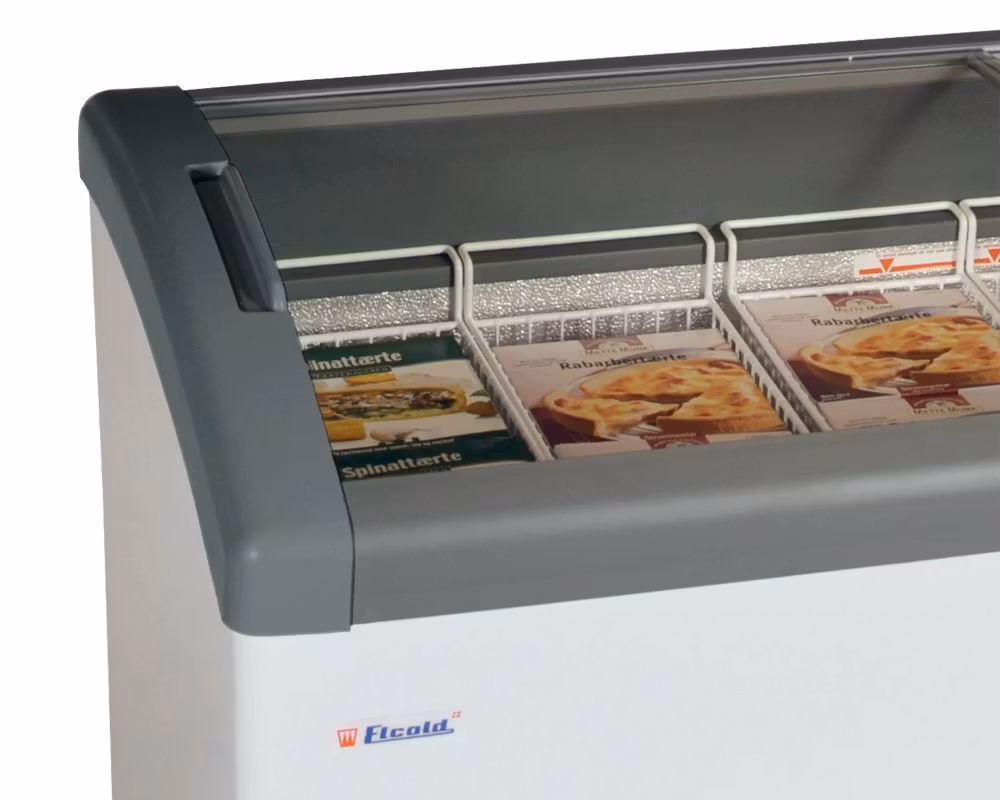 FOCUS 151 är en rymlig och driftsäker glassfrys från TEFCOLD, framtagen för caféer, kiosker och butiker med höga volymkrav och fokus på tydlig produktpresentation. De ramlösa, böjda skjutlocken ger maximal insyn och ett modernt uttryck som gör sortimentet lättöverskådligt och säljande.