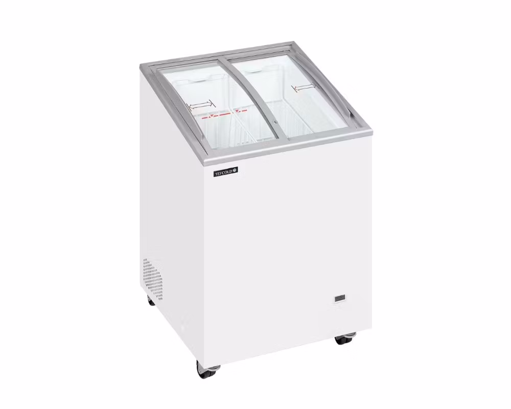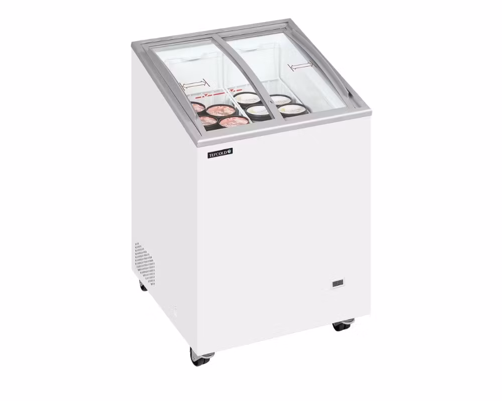 IC101SCEB LED är en smidig och driftsäker glassfrys från TEFCOLD, framtagen för kiosker, caféer, butiker och serveringsmiljöer där tydlig exponering, säker hantering och stabil frysprestanda är avgörande. Den vinklade displayen tillsammans med välvda skjutlock ger mycket god insyn och gör produkterna lättillgängliga för kunden.