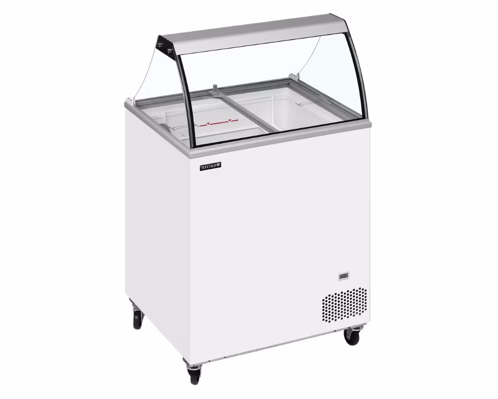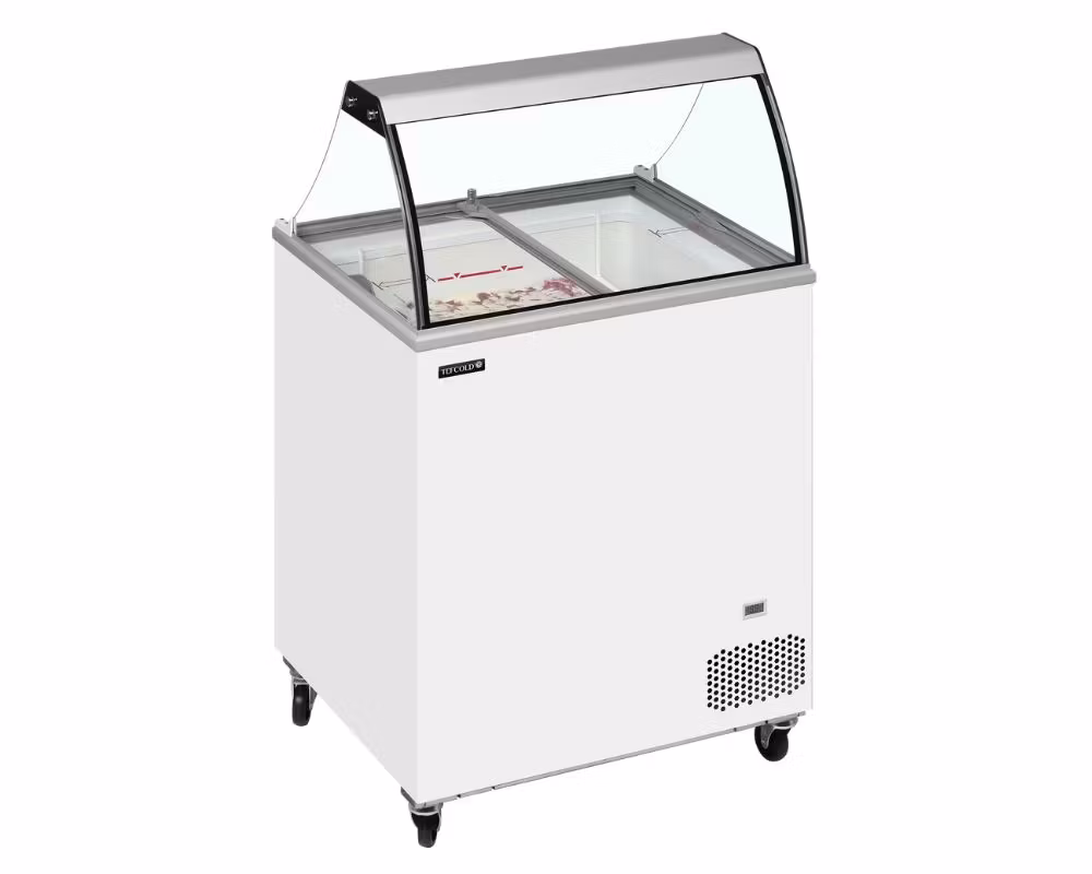 IC202SC-SO är en smidig och driftsäker skopglassfrys från TEFCOLD, framtagen för caféer, glassbarer och serveringsmiljöer som behöver tydlig presentation, hygienisk hantering och stabil frysprestanda i ett kompakt format. Det välvda nysskyddet i glas ger en skyddad och säljande exponering av glassen, medan de plana skjutbara glaslocken med lås ger trygg användning i publik miljö.