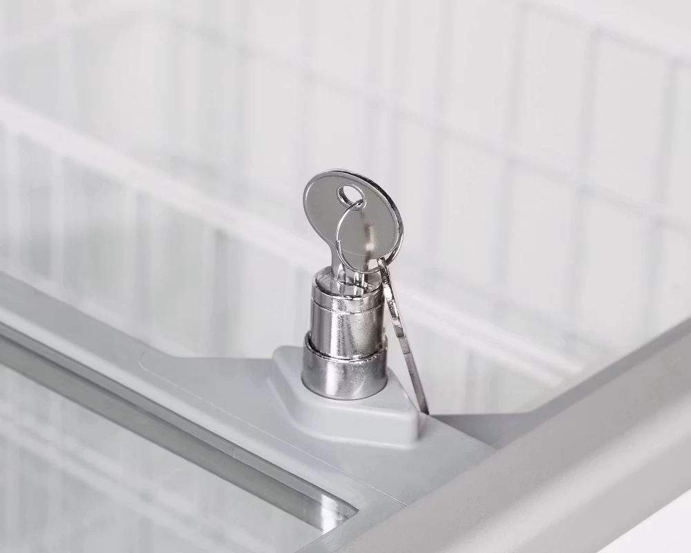 • Plana skjutbara glaslock med lås för säker hantering