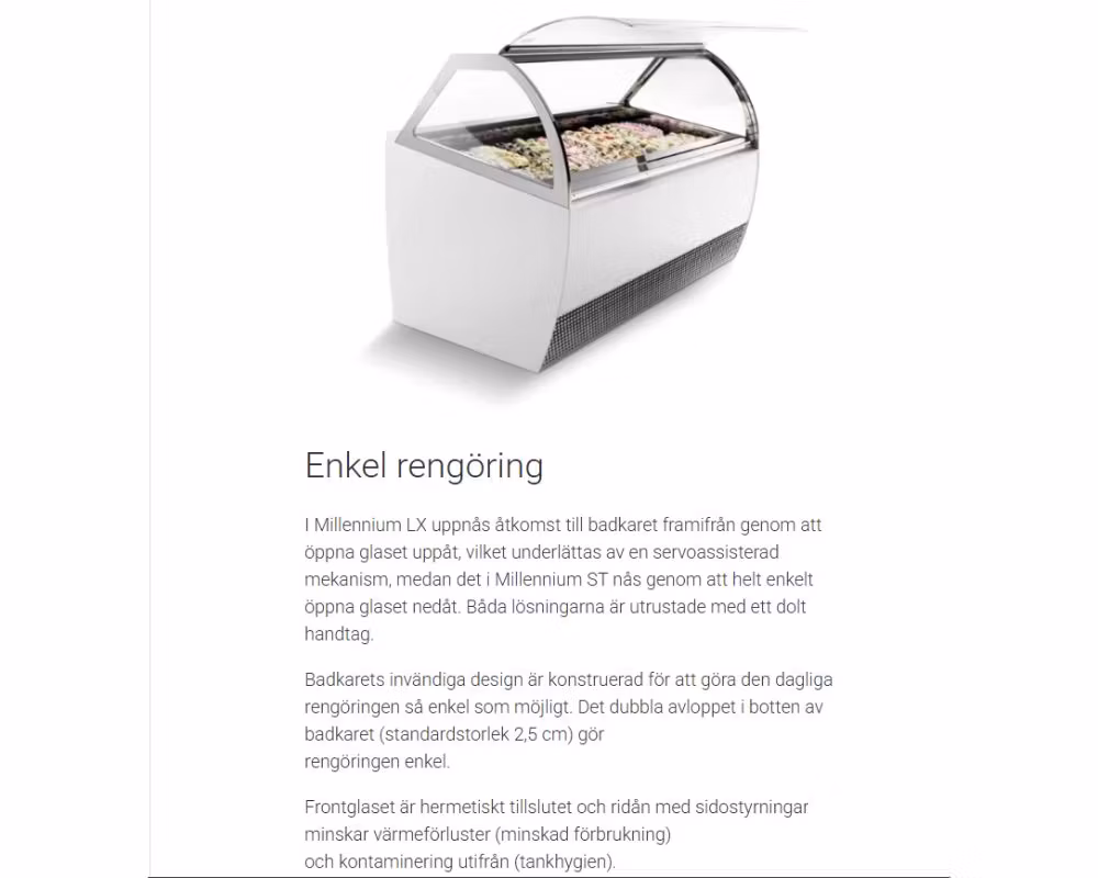 MILLENNIUM LX12 är en högpresterande ventilerad kulglassdisplay från ISA, utvecklad för professionella glasserveringar med höga krav på temperaturstabilitet, synlighet och energieffektivitet. Kombinationen av modern kylteknik, uppvärmda glasytor och genomtänkt luftflöde säkerställer optimal glasskvalitet även i krävande klimat.