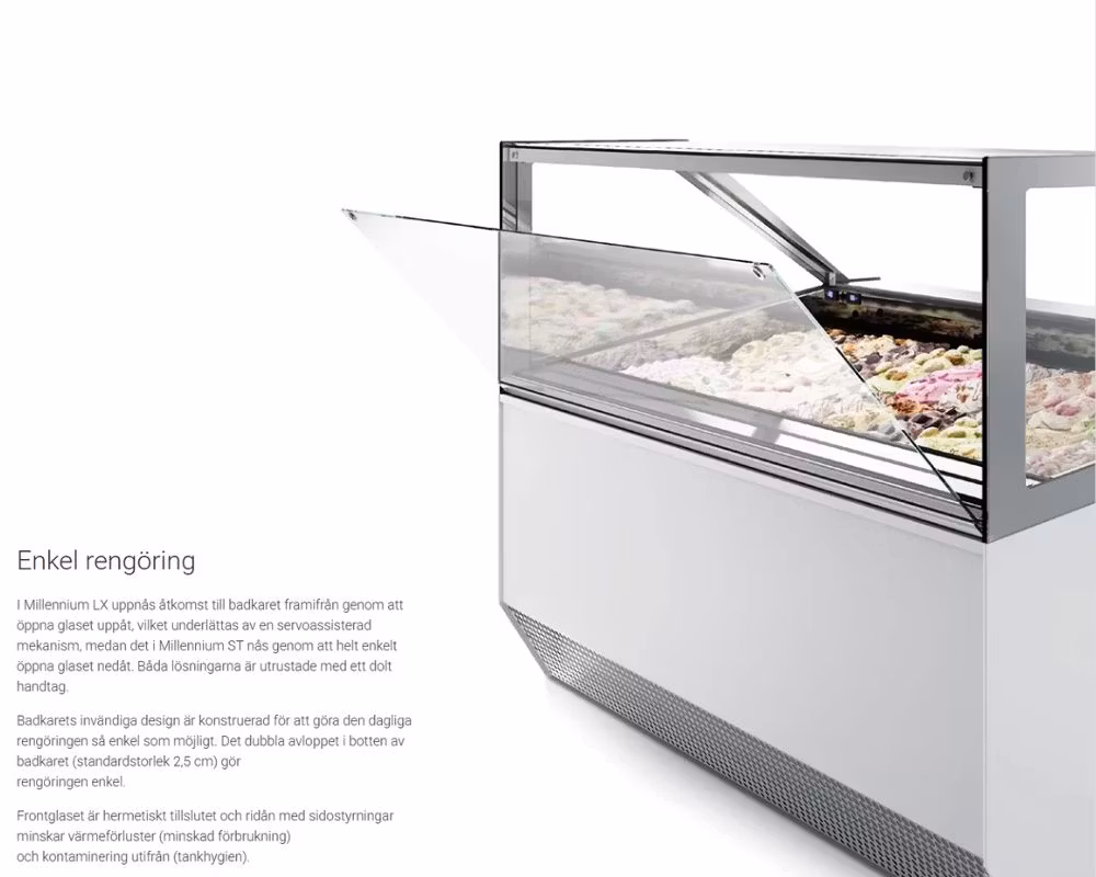 MILLENNIUM ST12 kombinerar rak estetik, avancerad kylteknik och hög driftsäkerhet, vilket gör den till ett utmärkt val för verksamheter som vill ha en elegant men kraftfull lösning för kulglass.