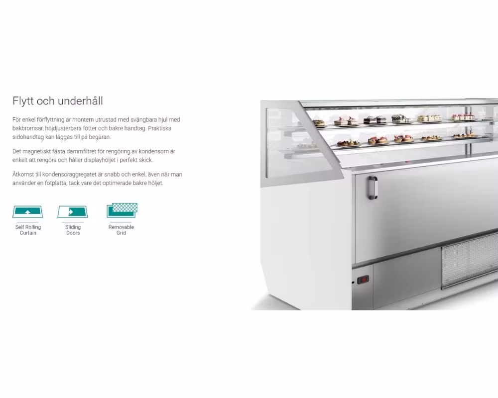 Kondens är inget problem, inte ens i krävande klimat. Tack vare uppvärmd frontglasruta och uppvärmda sidorutor hålls glaset alltid klart, vilket ger optimal produktexponering och ett professionellt intryck hela dagen.