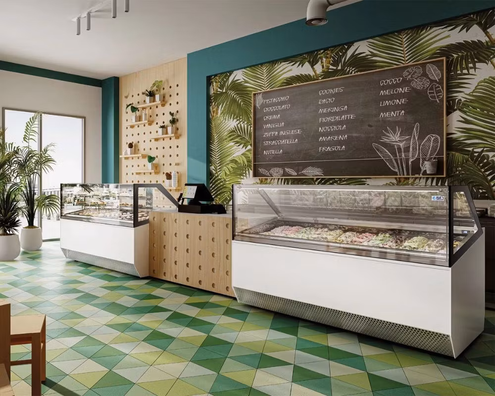Tack vare uppvärmt frontglas och uppvärmda sidorutor elimineras kondens även i varma och fuktiga miljöer. Resultatet är alltid fri sikt mot glassen och ett professionellt intryck under hela serveringsdagen.
