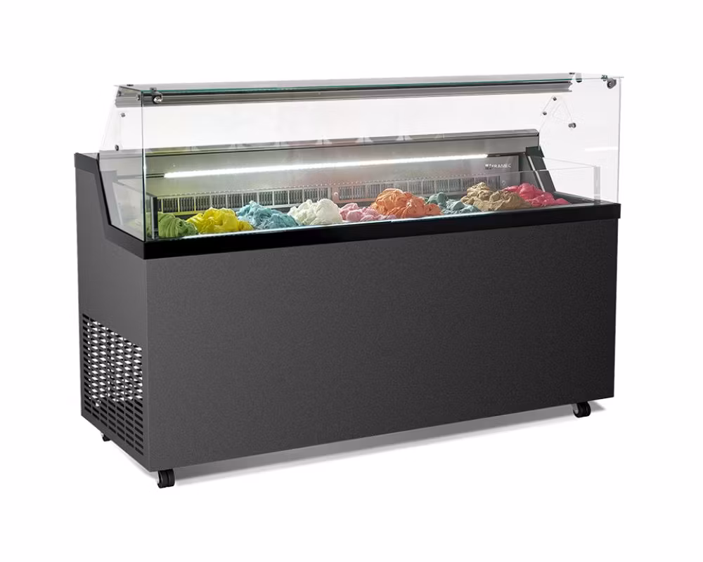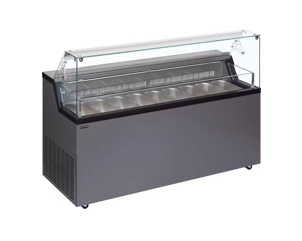 MIRABELLA 9 är en rymlig och professionell display för kulglass från Framec, utvecklad för glassbarer, caféer och restauranger med högt kundflöde och stora sortiment. Den plana glasovandelen ger fri sikt över glassorterna och skapar en elegant, säljande presentation i serveringsmiljön.