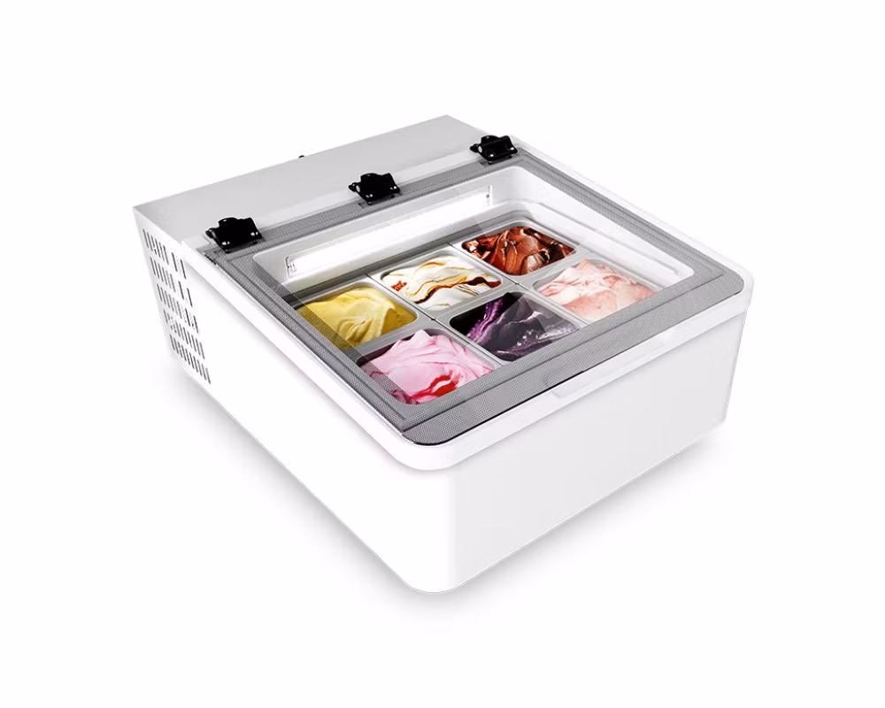 ICE3 är en platsbesparande och elegant skopglassfrys från Framec, framtagen för bufféer, caféer och serveringar som vill erbjuda tydlig presentation och smidig åtkomst i ett kompakt format. Den vinklade displayen ger god överblick över sortimentet, medan det plana glaslocket med gångjärn gör serveringen enkel och snabb.