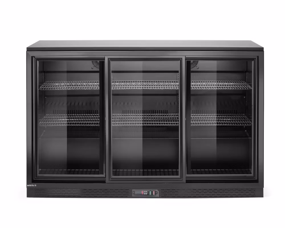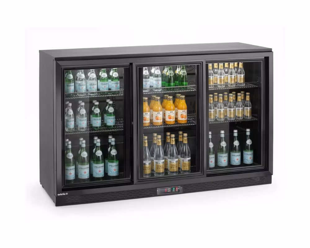 Backbar kylskåp med 3 skjutdörrar – effektiv dryckeskyl för bar, restaurang och café