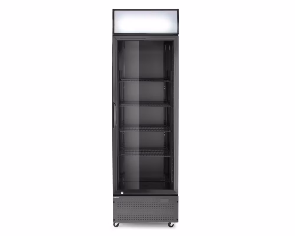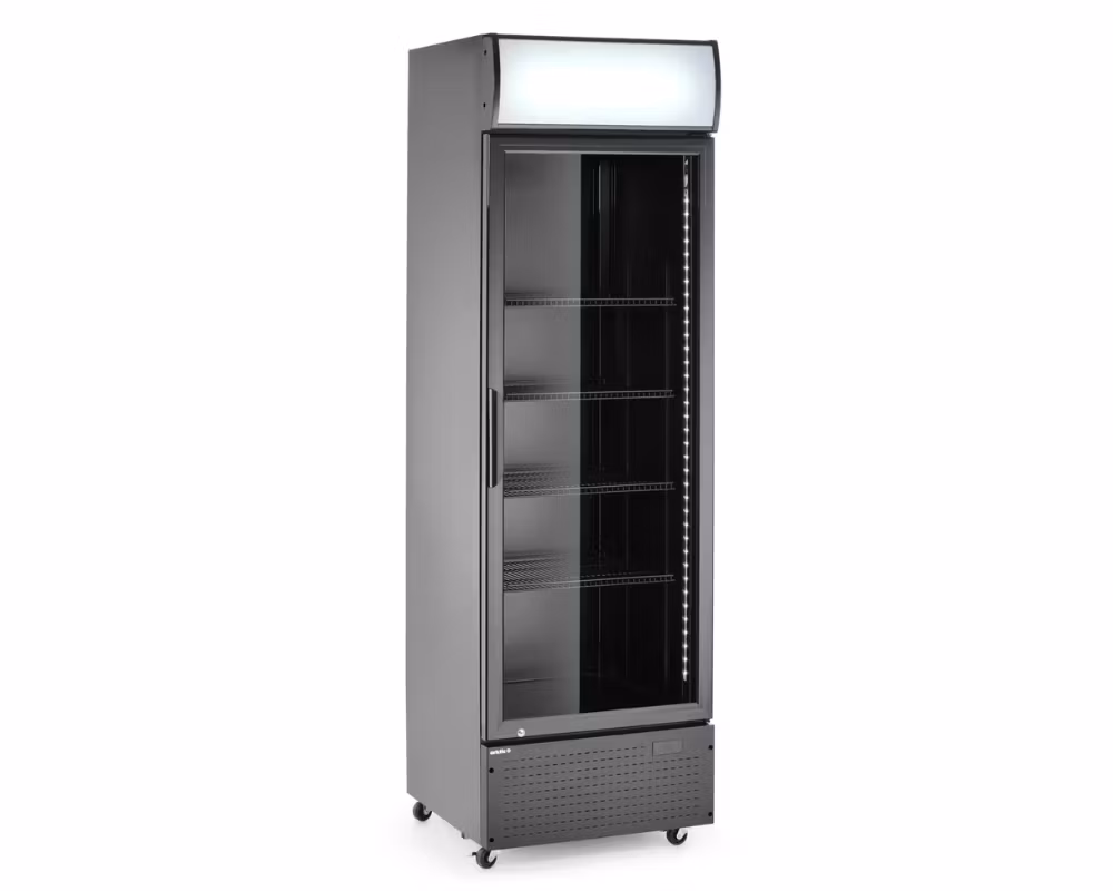Ett stilrent och professionellt backbar-kylskåp med belyst ljuslåda som kombinerar effektiv kylning med stark exponering av drycker och varumärke. Den ventilerade kylningen säkerställer jämn temperatur i hela skåpet, medan LED-belysning och glasdörr ger en attraktiv presentation. Perfekt för barer, restauranger och serveringsmiljöer där både funktion och synlighet är viktiga.