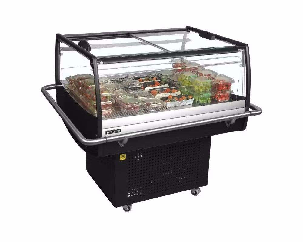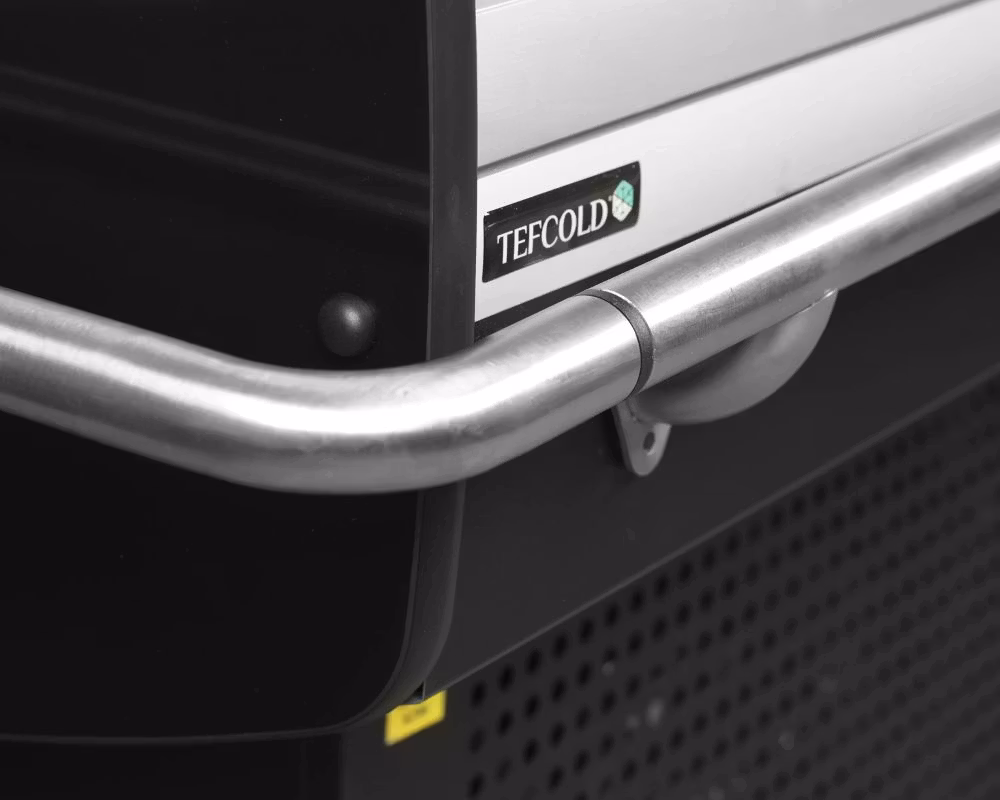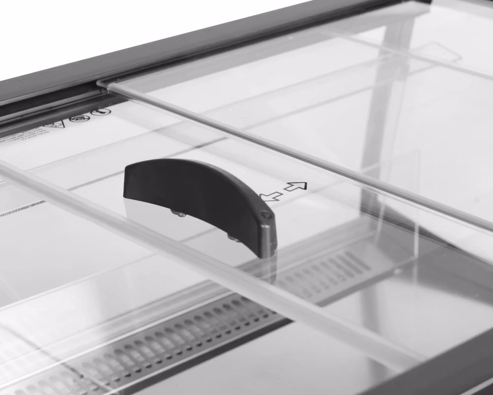 Med skjutlock i glas och plexiglassidor runtom får produkterna maximal synlighet från alla vinklar. Den höga påfyllningsnivån ger generöst förvaringsutrymme i förhållande till storleken. Stötfångare på fyra sidor skyddar enheten i intensiva butiksmiljöer, och tack vare 4 kraftiga styrhjul kan kylen enkelt flyttas och placeras strategiskt i butiken.