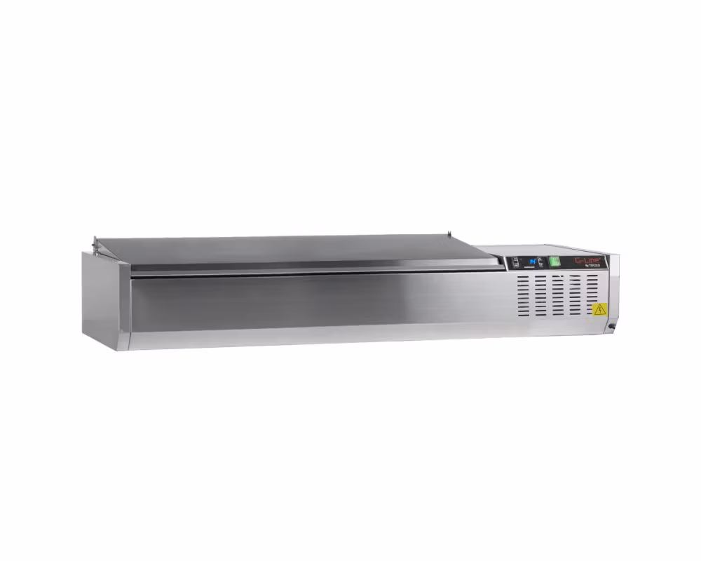 GVC33-140 S/S är en professionell vitrinkylenhet framtagen för pizzerior, caféer, salladsbarer och snabbmatsrestauranger där effektiv ingredienshantering och hög hygienstandard är avgörande. Den extra bredden ger plats för 6 x GN1/4-kantiner (medföljer ej) och skapar en strukturerad och lättillgänglig arbetsstation.