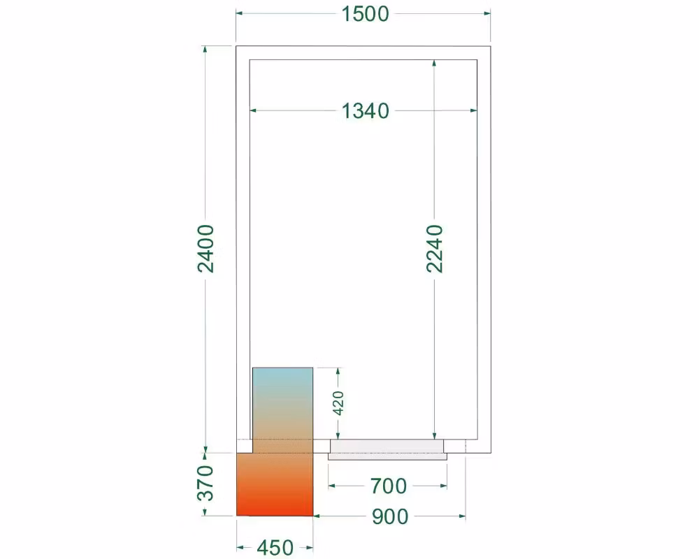 Kylrum CRPF1524, 1500x2400x2200mm Ventilerad, TEFCOLD
