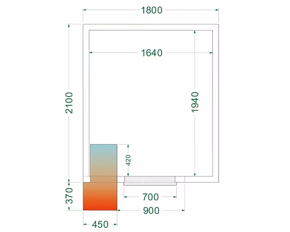 • Externa mått (BxDxH): 1800 × 2100 × 2200 mm
