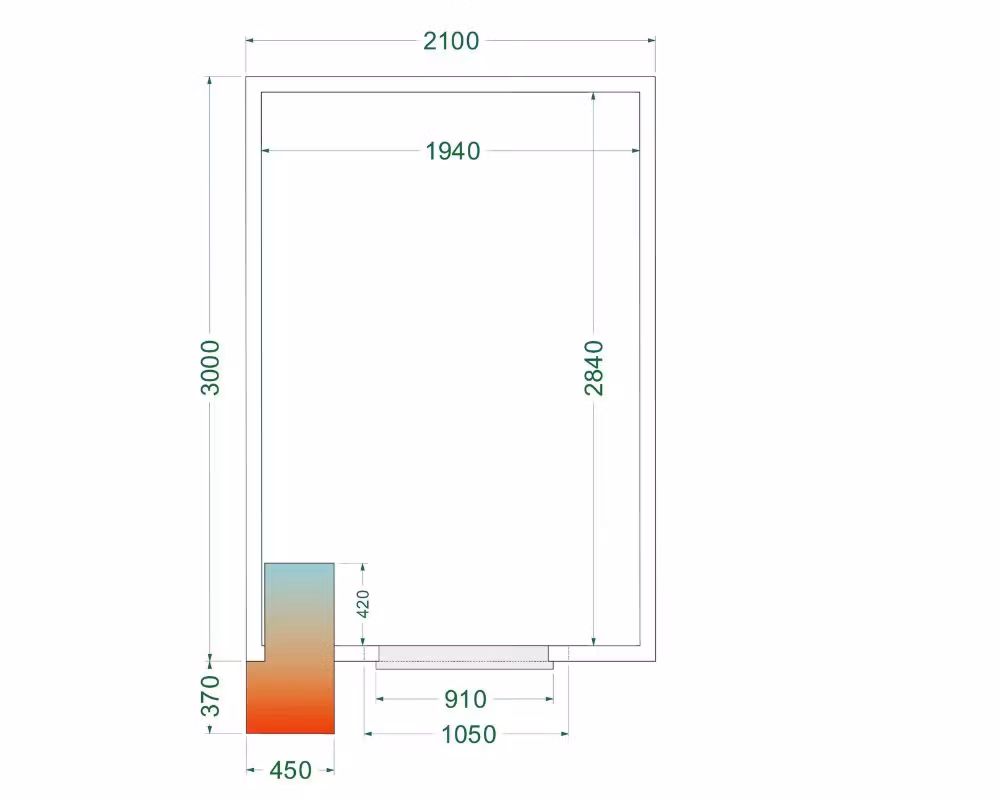• Yttermått (BxDxH): 2100 × 3000 × 2200 mm