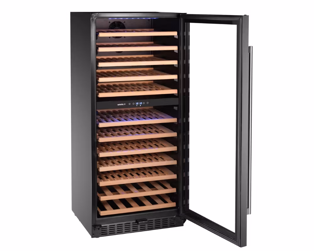 Denna kraftfulla vinkyl från Arktic är utvecklad för professionell vinlagring, exakt temperaturkontroll och elegant presentation. Med två separata temperaturzoner kan du lagra både rött och vitt vin under optimala förhållanden i samma enhet – perfekt för restaurang, bar eller vinentusiast.