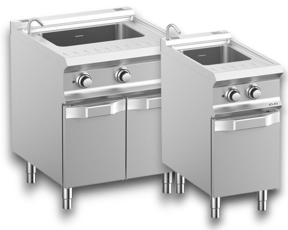 Alla enheter är tillverkade i högkvalitativt rostfritt stål (AISI 304/316) och utrustade med funktioner som översköljningssystem, perforerade bottnar, kulventiler och temperaturreglering. Modeller med ett eller två bad ger flexibilitet vid tillagning av olika pastatyper samtidigt.