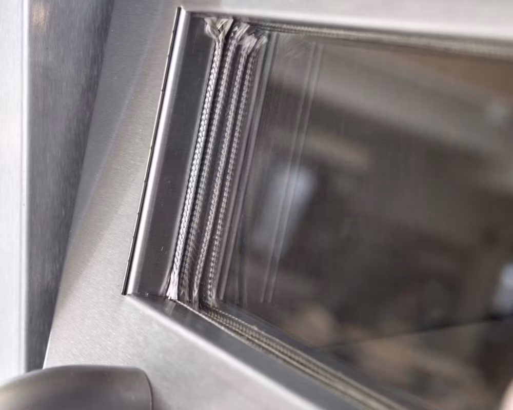 Härdat glas med värmereflekterande ytskikt som behåller värmen i ugnsrummet och gör det möjligt att övervaka bakningen utan att öppna luckan. Bidrar till bättre arbetsmiljö genom minskad värmeläckage.
