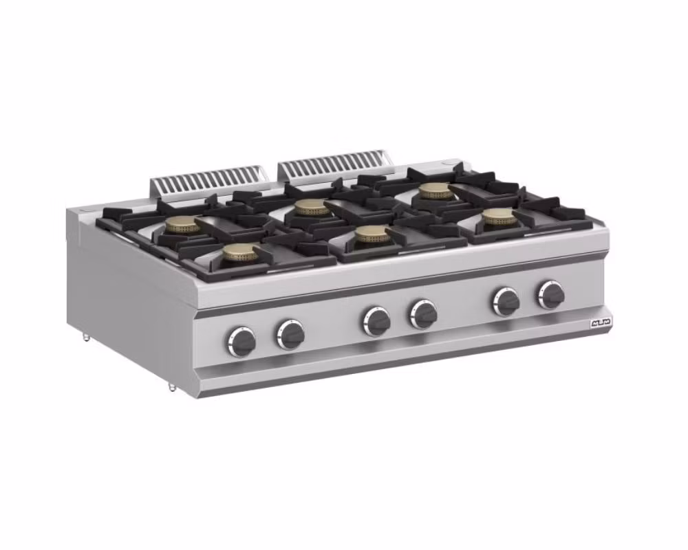 En kraftfull och professionell gasspis med sex högpresterande brännare, utvecklad för restauranger och storkök där maximal kapacitet och flexibilitet i matlagningen är avgörande. Den stora arbetsytan gör det möjligt att arbeta med flera kastruller och pannor samtidigt, vilket gör modellen idealisk för kök med högt tempo och stora produktionsvolymer.