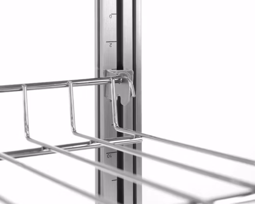 Skåpet har ett hölje i rostfritt stål för lång livslängd och enkel rengöring. Den invändiga takbelysningen framhäver maten, medan den bakre dörren gör det enkelt att fylla på och ta ut produkter. Med tre höjdjusterbara hyllplan i förkromat stål (400×335 mm) finns gott om plats för olika typer av livsmedel.