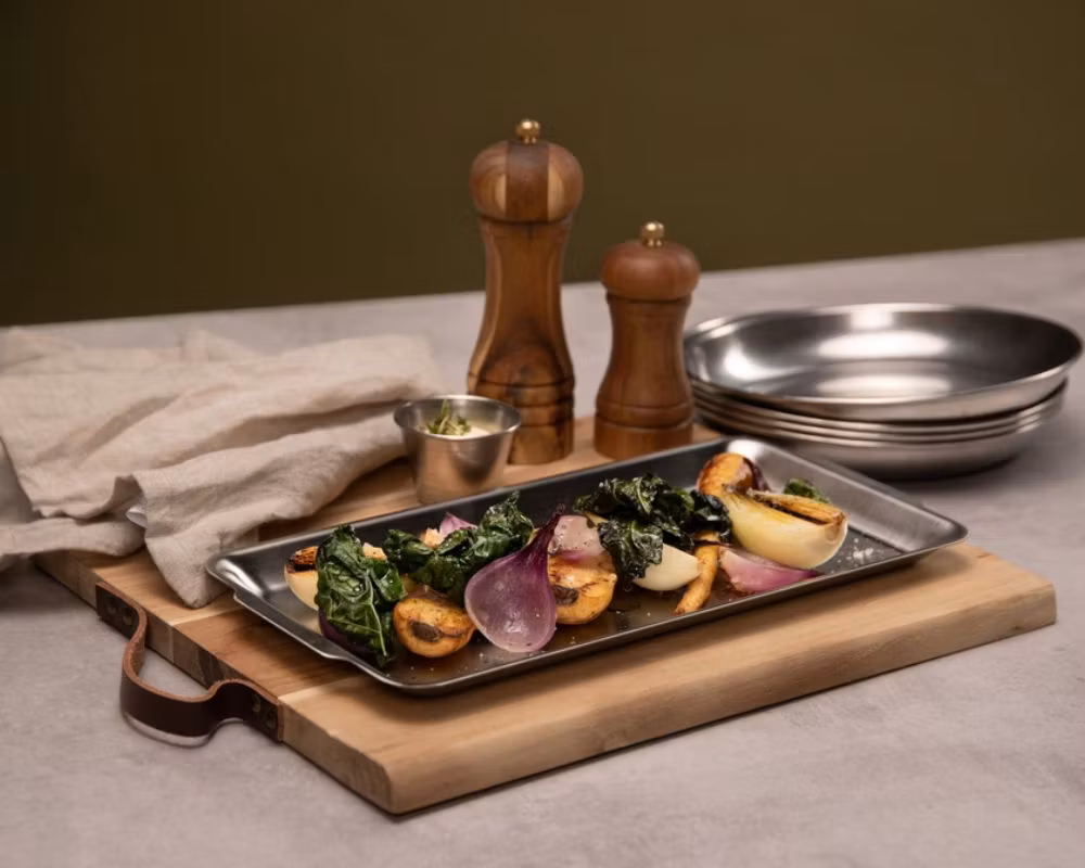 En användarvänlig och slitstark stålbricka, perfekt för både uppvärmning och servering. Tillverkad i högkvalitativt rostfritt stål, vilket gör den slitstark och värmetålig upp till 300°C. Utvecklad för professionella kök, men passar lika bra för hemmabruk.