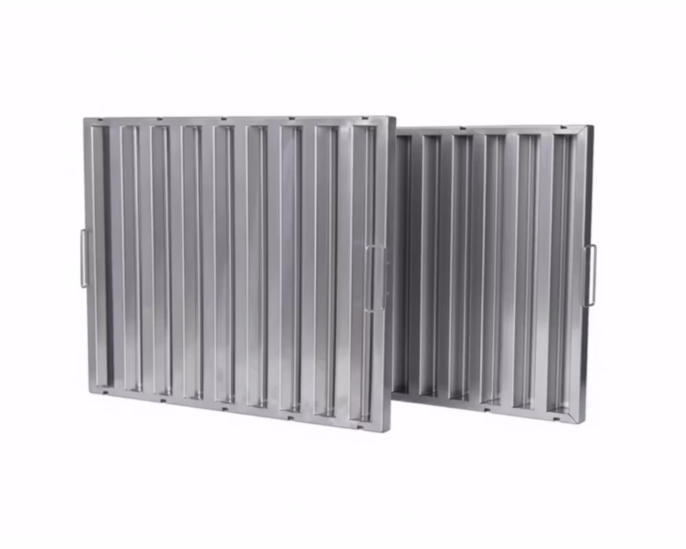 Flamskyddet är tillverkat med ram och lameller i rostfritt stål (AISI 304) vilket ger hög hållbarhet, lång livslängd och god motståndskraft mot korrosion. De vinklade lamellerna stoppar lågor och gör att luften kyls ned när den passerar genom filtret. Samtidigt kondenseras fettpartiklar och leds bort via en ränna, vilket minskar fettansamlingar i ventilationskanaler och bidrar till bättre brandsäkerhet.