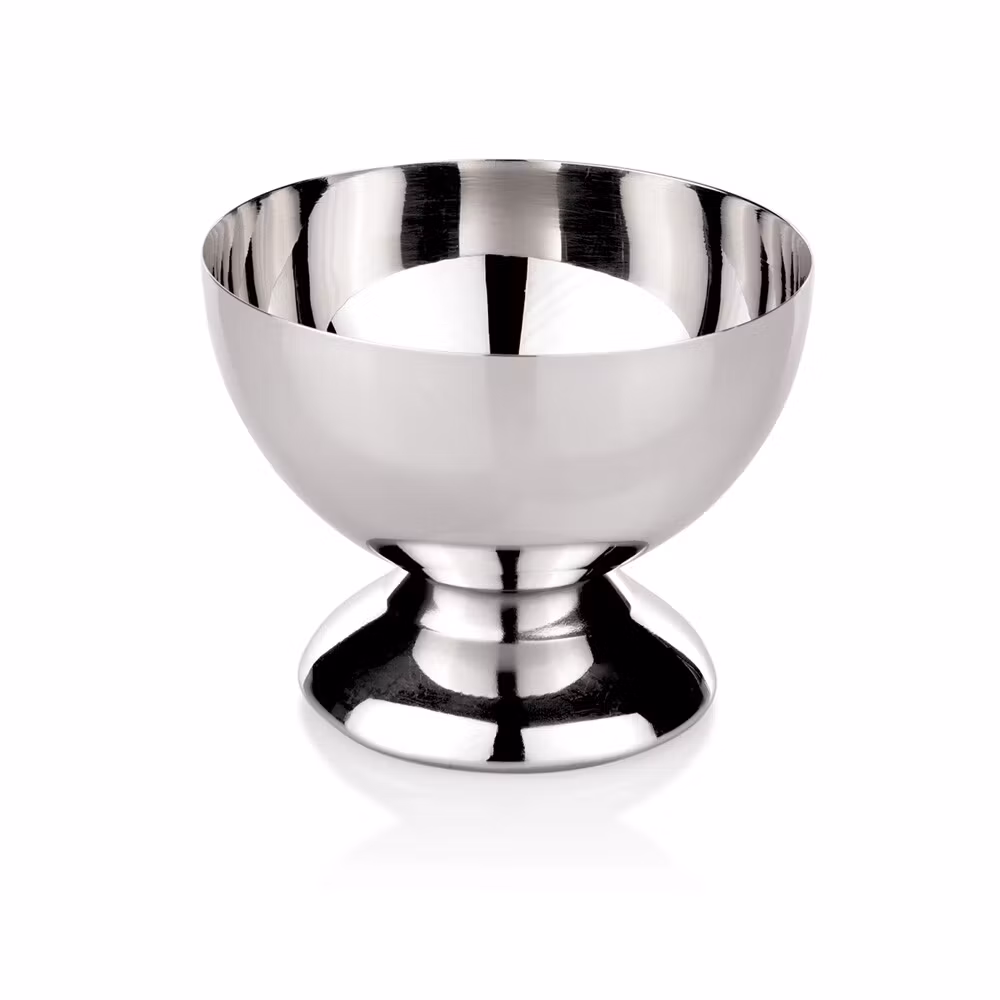 Denna stilfulla glasskål i rostfritt stål kombinerar klassisk design, stabil fot och professionell hållbarhet. Den upphöjda formen ger en elegant presentation som passar perfekt för restauranger, caféer och dessertserveringar.
