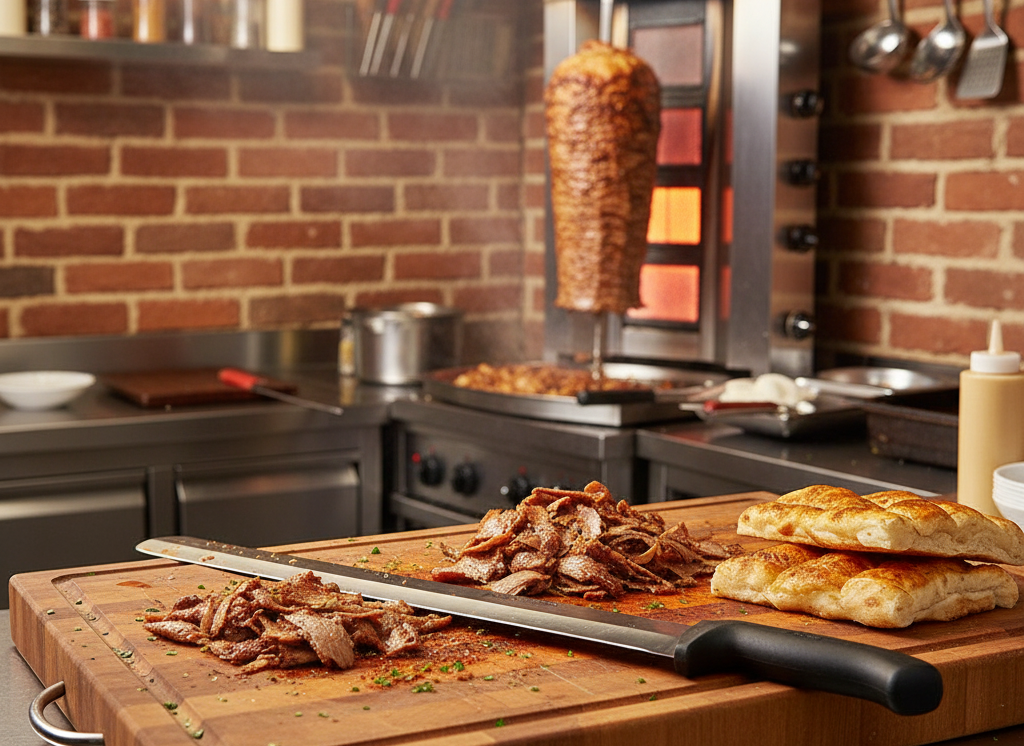 Dönerknivar används för att skära kött snabbt, jämnt och precist från roterande grillspett. De är utvecklade för professionell användning inom kebab, shawarma och gyros, och finns i både elektriska och manuella modeller. Med vassa blad och ergonomisk design ger de en effektiv och säker skärning – perfekt för restauranger och gatukök som kräver snabb service och jämna skivor varje gång.