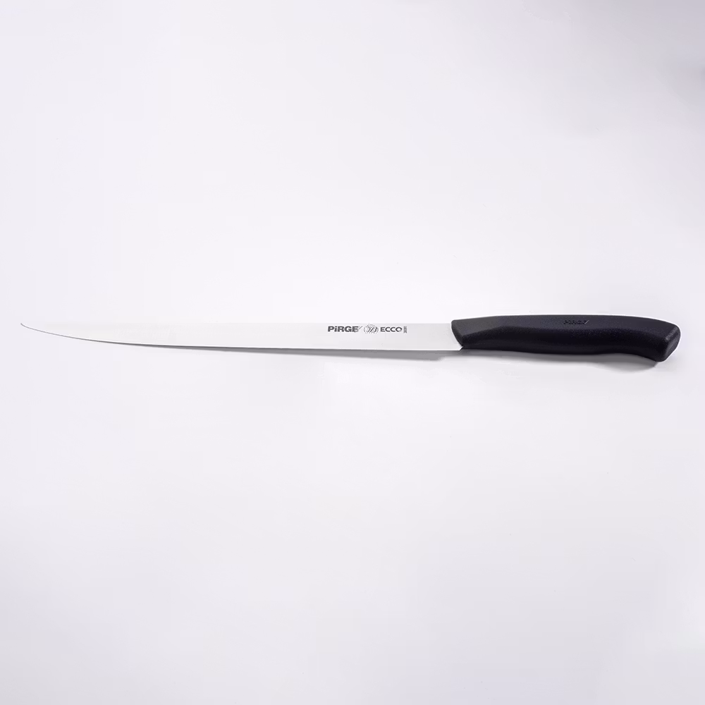 Pirge Ecco Fish Fillet Kniv 25 cm är framtagen för kockar som kräver hög precision vid filéering av fisk och kött. Med sitt tunna, flexibla blad på 25 cm i tyskt rostfritt stål (1.4116 – X50) erbjuder den både styrka och följsamhet för exakta snitt.