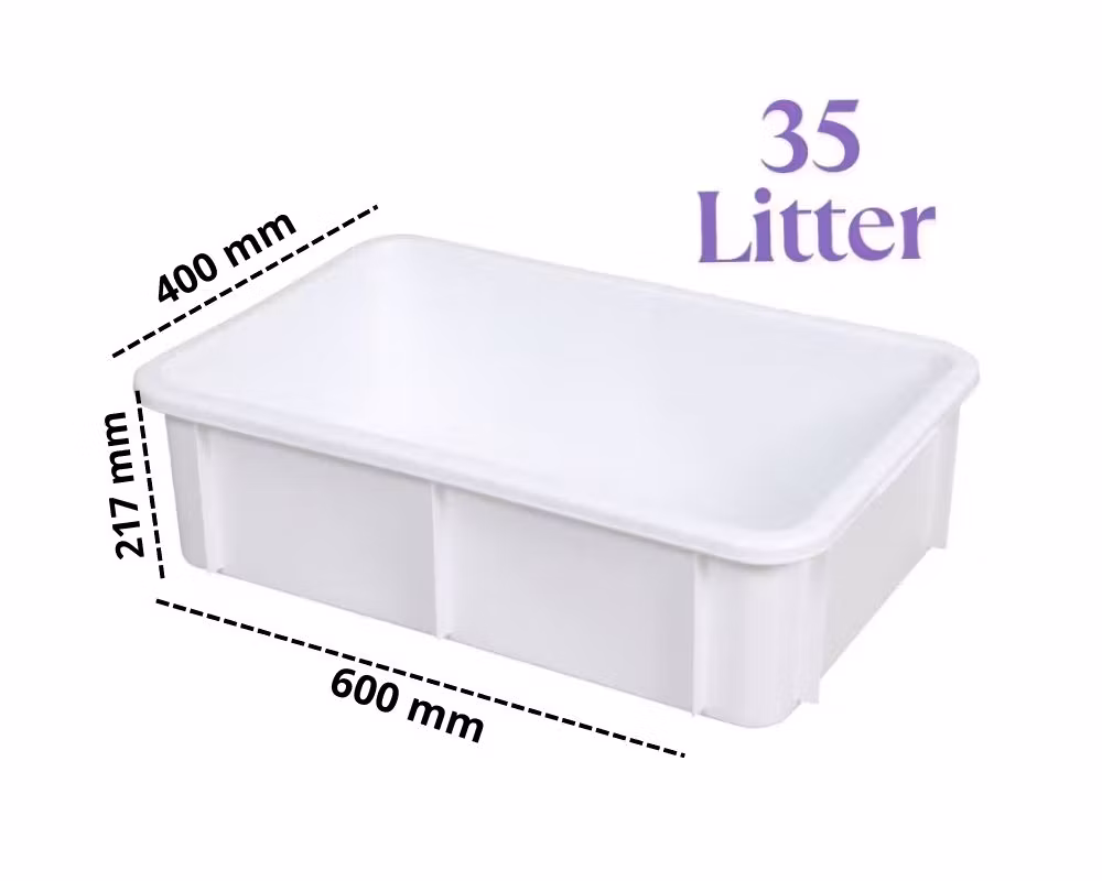 Livsmedelsgodkänd, stapelbar och temperaturtålig från -40°C till +90°C. Denna plastback på 35 liter är framtagen för säker och hygienisk förvaring av råvaror, livsmedel och ingredienser i restauranger, storkök, bagerier och livsmedelsproduktion.