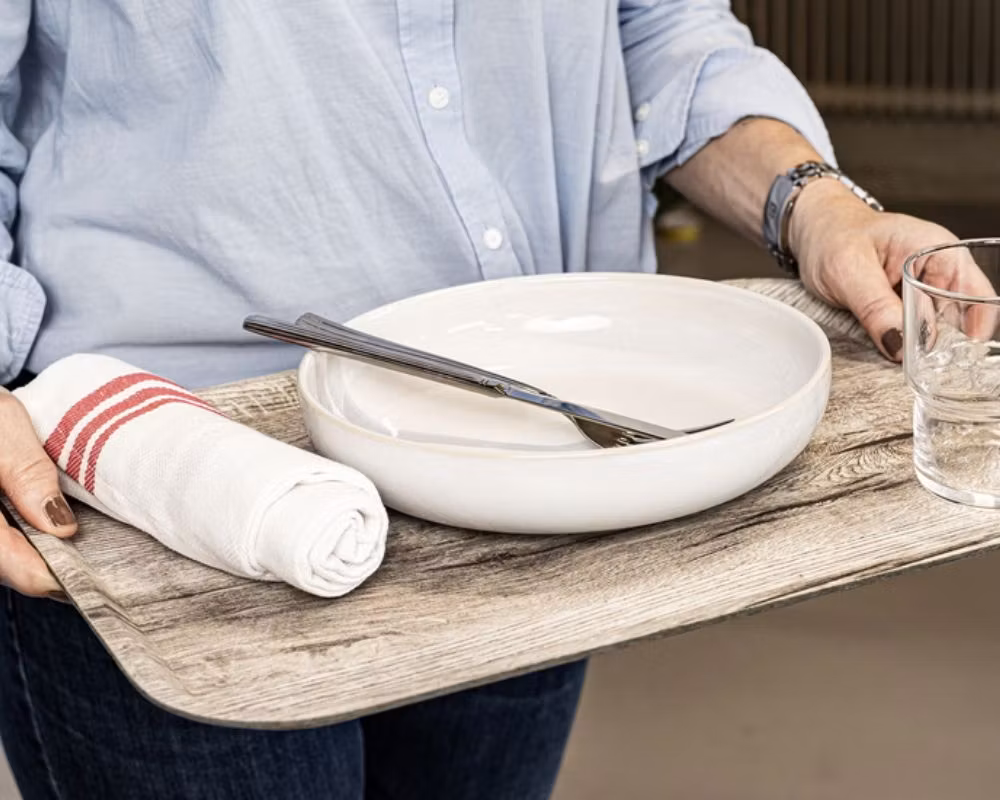 En lätt och slitstark bricka i laminerat kraftpapper med en matt texturerad finish som ger en autentisk och stilren look. Perfekt för användning i olika typer av serveringsmiljöer, från caféer till restauranger.
