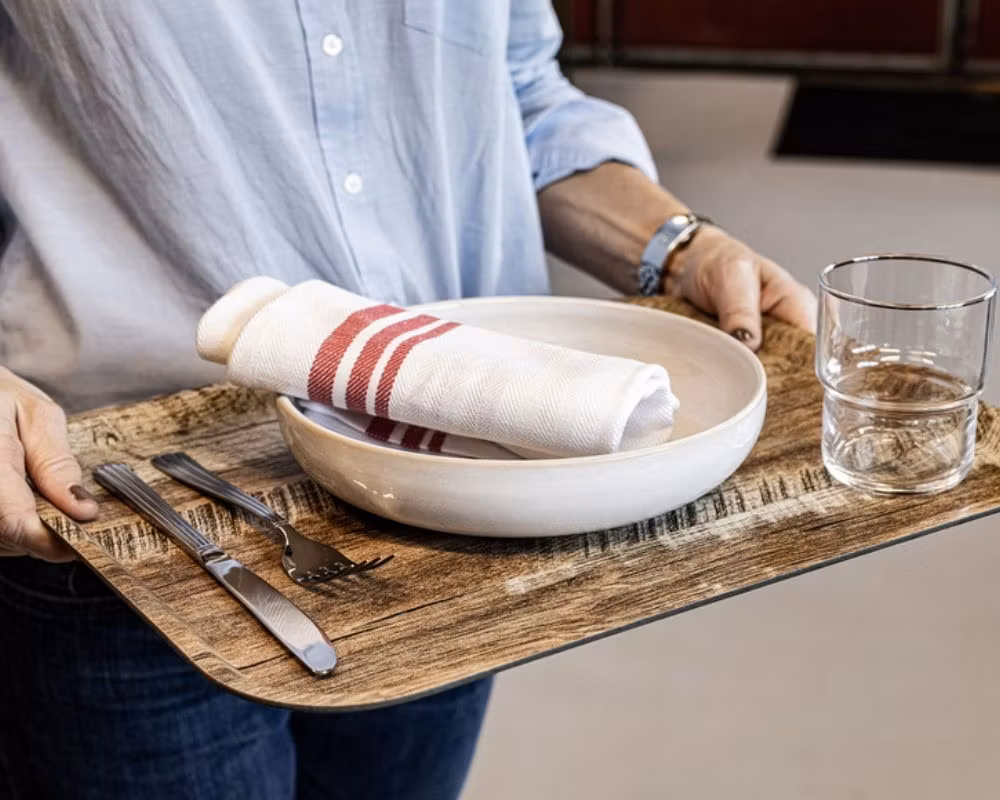 En funktionell och stilren bricka som passar perfekt för professionell servering och daglig användning, där både design och hållbarhet är viktiga faktorer.