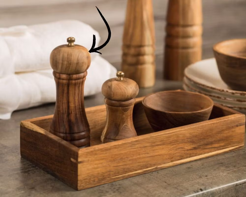 Denna gedigna salt- och pepparkvarn är designad för professionella kök och kombinerar stil och funktion. Tillverkad i FSC-märkt akaciaträ med ett pålitligt keramiskt malverk, vilket ger en lång livslängd och jämn malning. Malningsgraden kan enkelt justeras via metalknoppen på ovansidan, och kvarnen levereras med märkta knoppar för både salt och peppar.