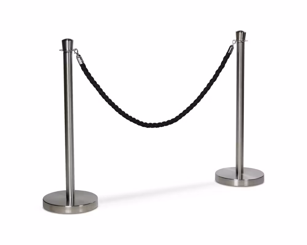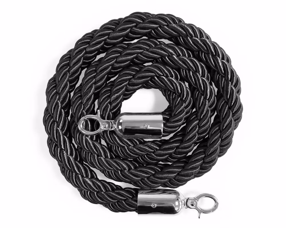 Flätat avspärrningsrep i svart med Silverfärgade krokar, framtaget för köstolpar i miljöer där man vill skapa tydliga kölinjer, exklusiva entréer och organiserade avspärrningar. Med en längd på 150 cm passar repet perfekt mellan standardköstolpar och används ofta i hotell, restauranger, nattklubbar, teatrar, mässor och eventmiljöer.