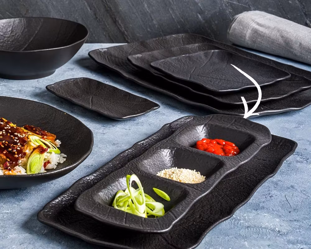 SHADE Fat med 3 fack 30 cm svart är ett funktionellt och stilrent serveringsfat i porslin, utvecklat för professionell servering där struktur, kontrast och flexibilitet är avgörande. De tre separata facken gör fatet perfekt för asiatiska upplägg, dips, såser, tillbehör, tapas och sharing dishes, där smaker hålls åtskilda och presentationen blir tydlig och genomtänkt.
