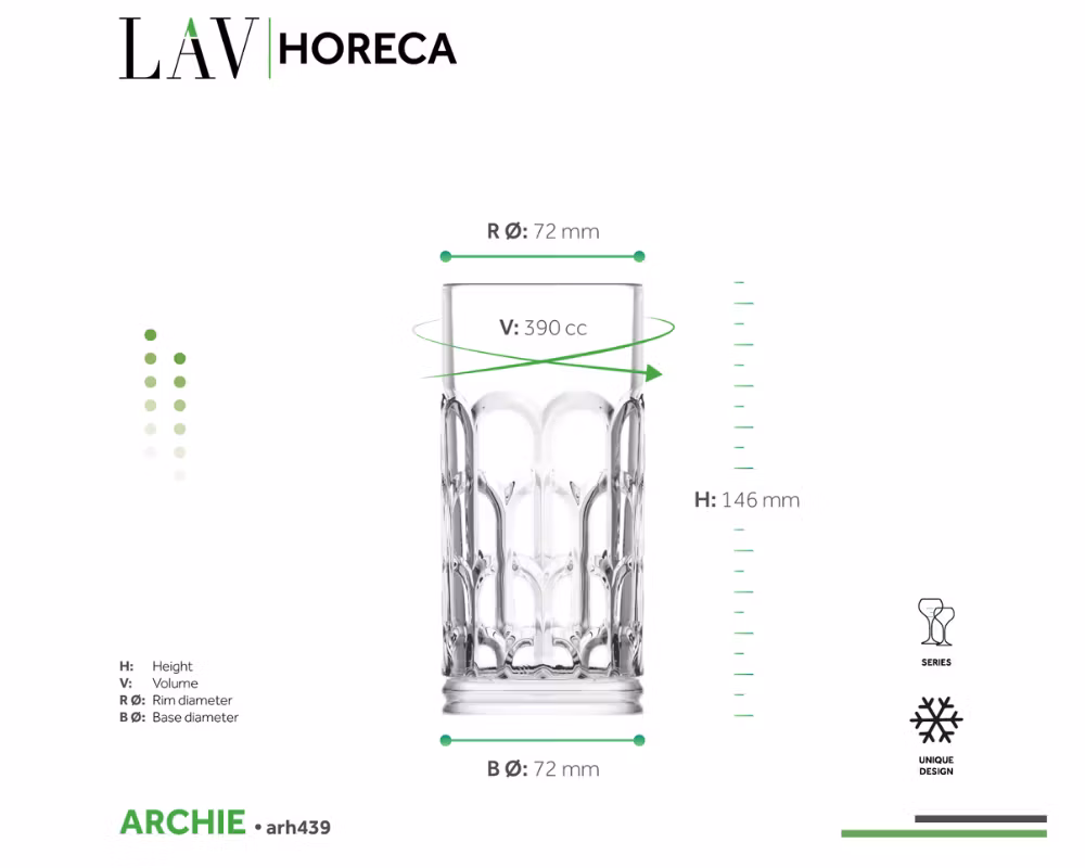 LAV Archie longdrinkglas kombinerar modern design med funktionell hållbarhet – ett utmärkt val för barer, restauranger och caféer som vill servera drycker med stil.