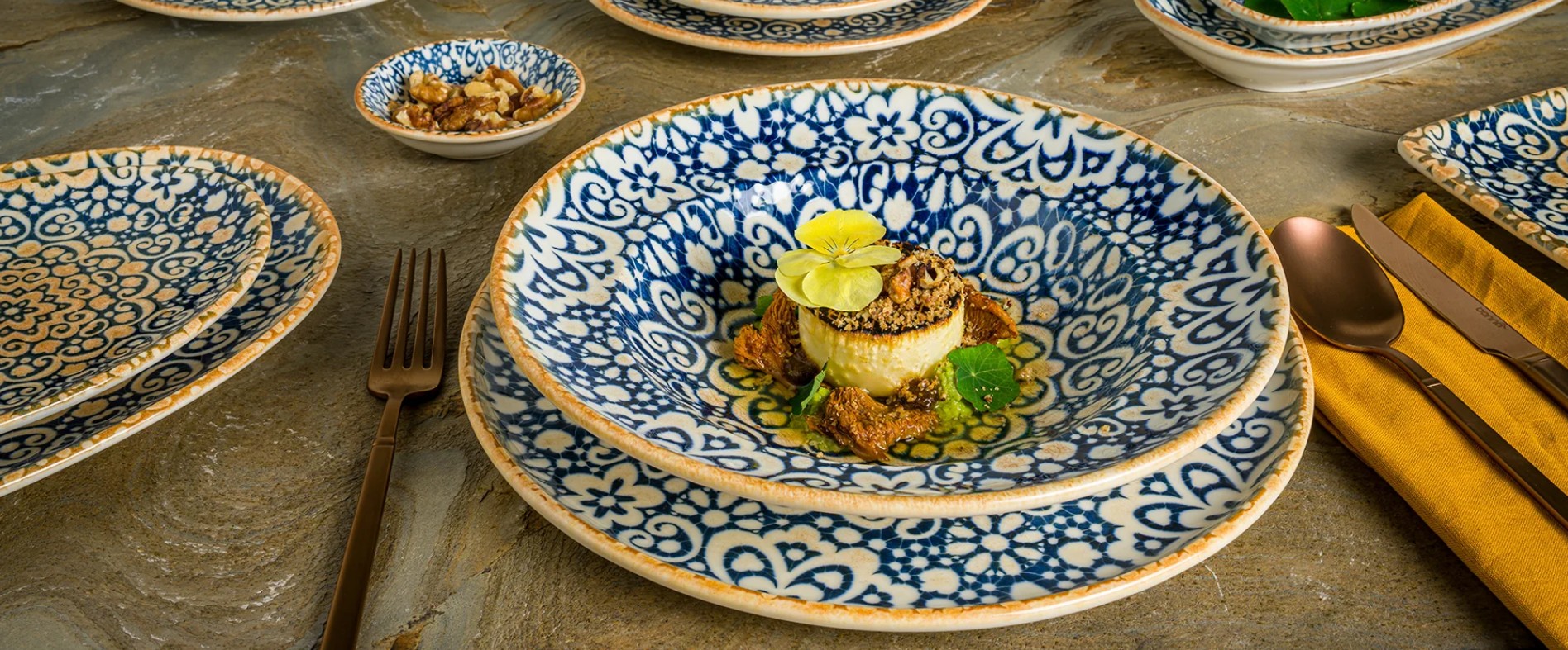 Och det bästa? Det är lika praktiskt som det är snyggt! Alhambra-porslinet är tåligt nog för ugn, mikrovågsugn, frys och diskmaskin – perfekt för både vardag och fest. Undersidan är stilrent beige, och serien passar lika bra på en lyxig restaurang som vid din egen köksbänk.